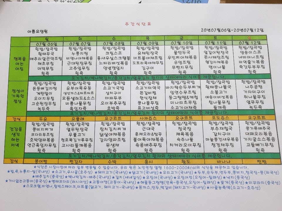 7월01주 식단표 입니다.