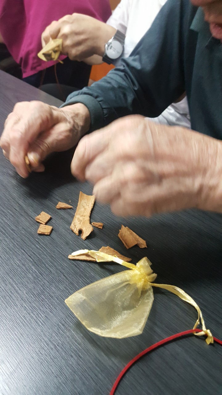 계피목걸이 만들기를 제공함으로서 입소자들이 정서적으로 안정될 수 있도록 하고 소근육 활동에 도움을 줄 수 있다. 또한 인지 기능 향상 및 유지를 할수 있도록 돕는다.1) 참여대상자들의 생활 만족도 상승2) 참여대상자들의 우울감 해소 및 활력부여3) 미술활동을 통한 인지기능향상과 소근육 발달에 도움을 준다.